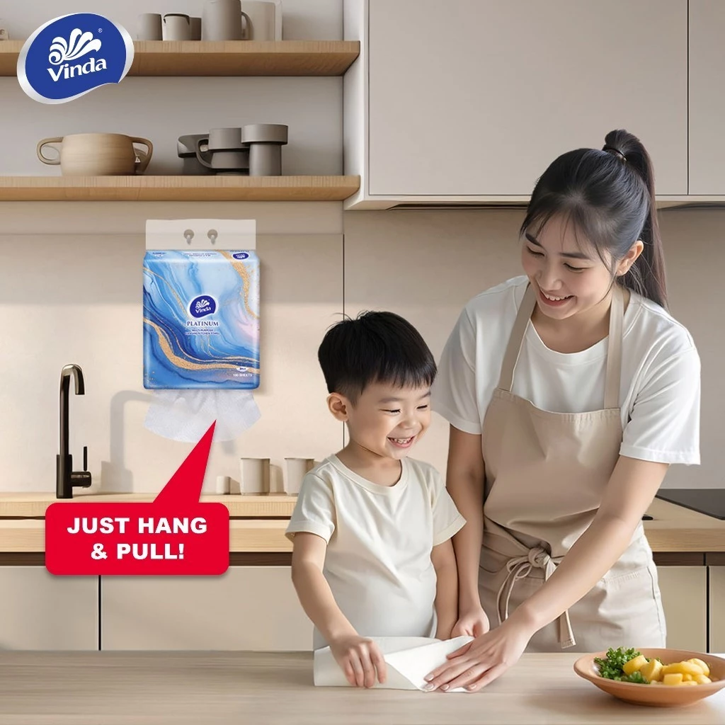 Vinda Platinum Multi-Purpose Kitchen Towel is able to absorb 3x oil of its own product weight, removing excess oil from fried food.